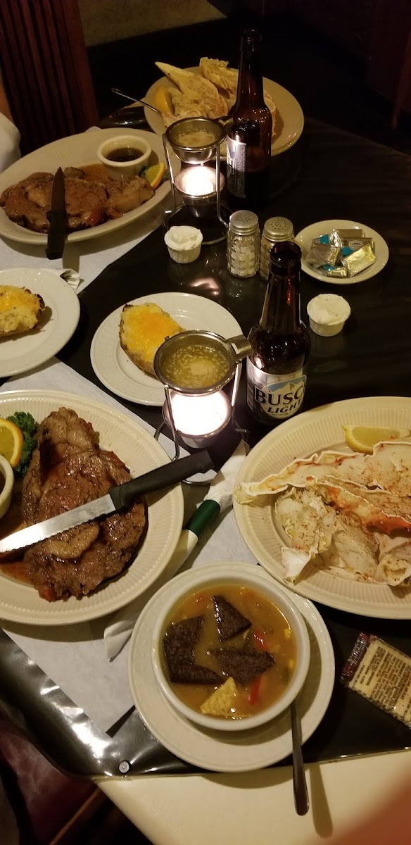 Family and I always love coming here for a new year's dinner of steak and seafood. Cozy corner right next to swan City Park Great location. Homie comfortable feel on the inside small town hole in the wall feel. Bathrooms are small and dated and have that urinal cake smell. What keeps us coming back is there menu. Surf and turf option and seafood great food for a great price!